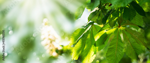 Fototapeta premium unscharfer blühender kastanienbaum