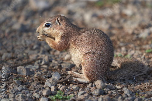 © rocchas75, Fototapeta premium Unstriped ground squirrel Xerus rutilus Amboseli National Park - Africa Eating Sitting