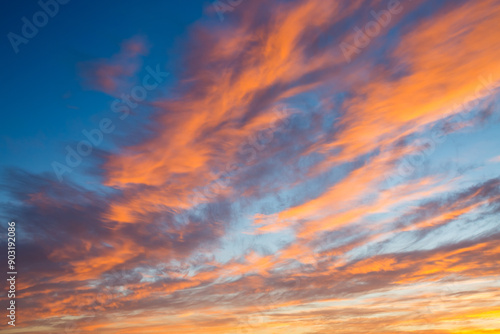 Fototapeta premium Unsurpassed sunset with colorful clouds lit by the sun.
