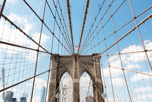Obraz premium Untersicht auf die Brooklyn Bridge in New York