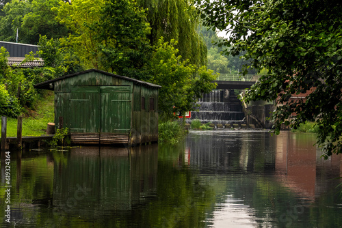 Obraz premium Unterspreewald bei Märkisch Buchholz mit Schleuse und Bootshaus