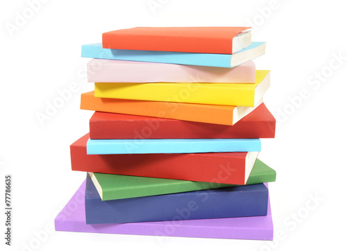 © david_franklin, Fototapeta premium Untidy stack of colorful paperback books isolated white background photo