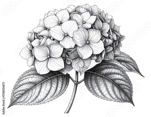 © MstFahmida, Fototapeta premium Untitled design - Botanical Line Art Hydrangea PNG