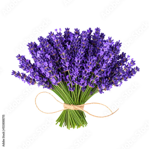 © Raju, Fototapeta premium Untitled design - Bunch of Fresh Spanish Lavender Tied with Twine, Top View PNG.And transparent the background.
