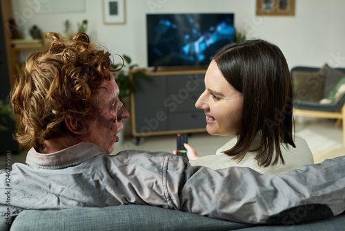 Fototapeta premium Unusual Young Couple Discussing Movie