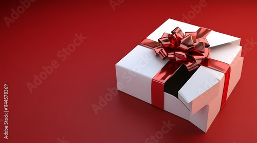 © heinng, Obraz premium Unwrapped Gift Mockup on Bright Red Photo From Above. AI Generated