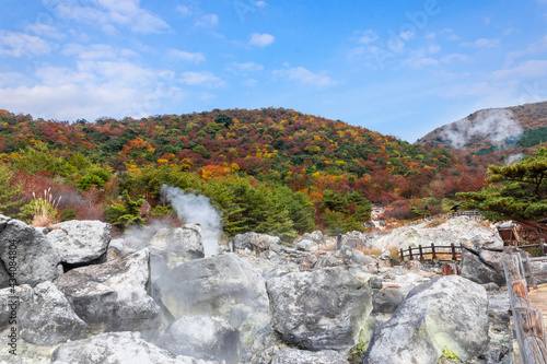 Naklejka premium Unzen Hell is a famous tourist destination within Unzen Hot Springs, chosen as the number one hot springs in Kyushu island.