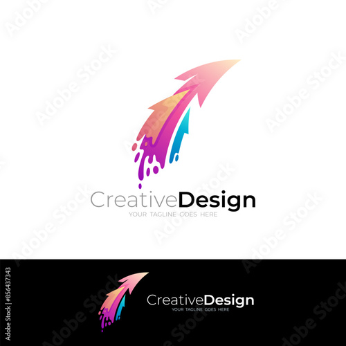© NUR, Obraz premium Up arrow logo with swoosh design vector, 3d colorful
