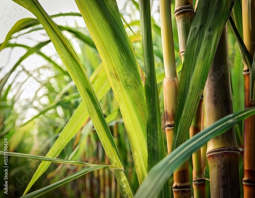 Fototapeta premium up close vibrant sugarcane stalks are displaying unique patterns and beautiful green leaves around the vegetation