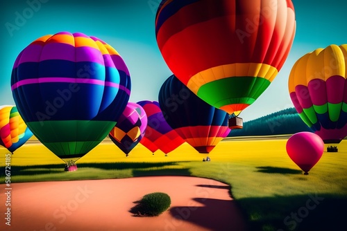 © Leandro, Obraz premium Up Close with a Rainbow of Balloons. Generative AI.