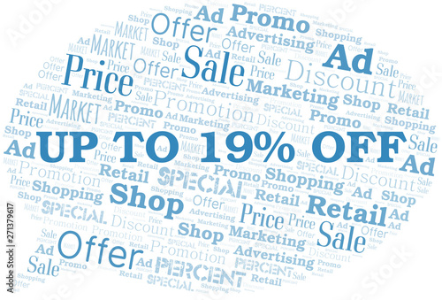 Fototapeta premium Up To 19% Off word cloud. Wordcloud made with text only.
