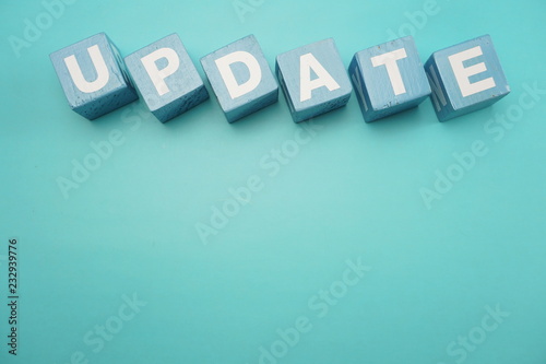 © may1985, Obraz premium Update word created with cubes alphabet letters on blue background