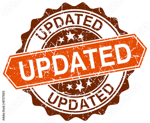 © Aquir, Obraz premium updated orange round grunge stamp on white