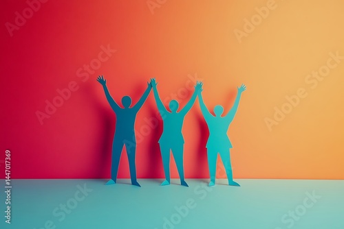 Fototapeta premium Uplifting Paper People Teamwork and Unity1