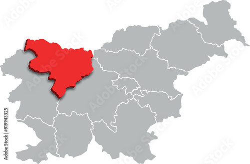 © WALDIR, Obraz premium upper carniola region map ADMINISTRATIVE DIVISIONS of SLOVENIA 3d isometric map