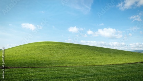Fototapeta premium Upright perspective of emerald hills under the sky