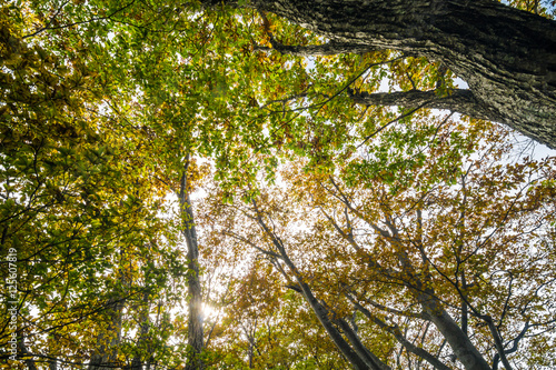 © themorningglory, Obraz premium Uprisen view of Autumn Leaves tree branch
