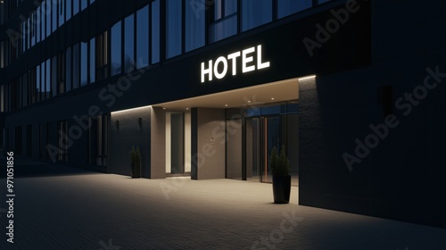 Obraz premium Upscale luxury hotel entrance at night - sleek design for modern architecture...