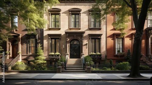 Fototapeta premium upscale luxury townhouse building illustration modern exclusive, sophisticated chic, designer high upscale luxury townhouse building
