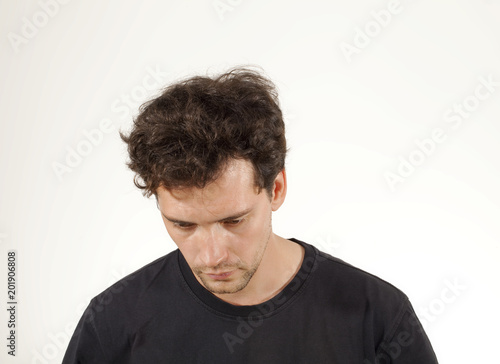 © lukas_zb, Fototapeta premium Upset man in black T-shirt