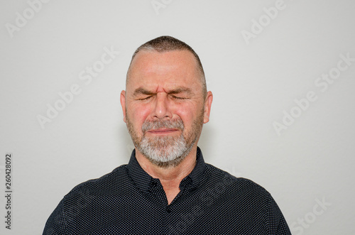 © michaelheim, Obraz premium Upset man with closed eyes in anguish