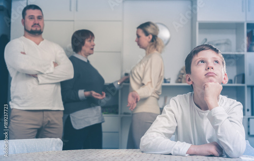 Obraz premium Upset son suffering from parental arguing