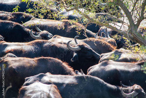 © Tayfun, Fototapeta premium upside view of a herd of buffalos at karaoglan village, bursa, turkey
