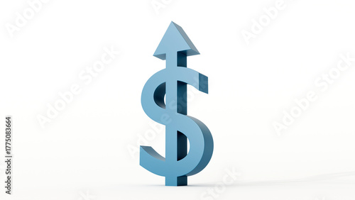 Fototapeta premium Upward blue dollar sign shaped as an arrow, concept of financial growth,...