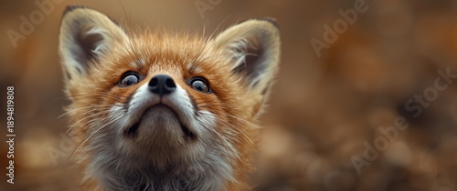 Fototapeta premium Upward Gazing Baby Red Fox Close-Up