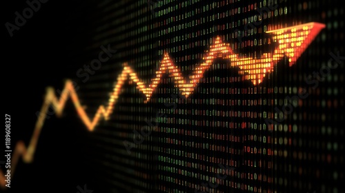 Fototapeta premium Upward trending arrow graph on a data background.