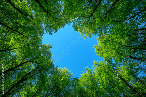 Obraz premium Upward View of Trees in a Forest
