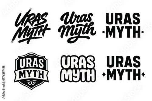 © Coosh448, Fototapeta premium Uras Lettering Variations. Uras Myth. Set lettering. harmonious lettering variations of the same emblematic concept, each with different artistic