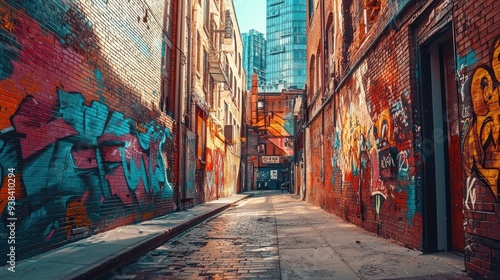 © Armir, Fototapeta premium Urban Alleyway Graffiti Art. Buildings a