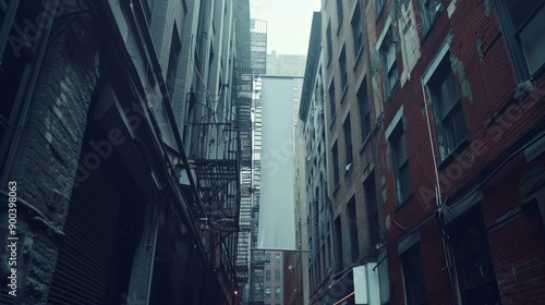 © Alexander Kurilchik, Fototapeta premium Urban Alleyway with Fire Escapes in Modern City at Daylight