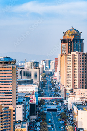 © Govan, Fototapeta premium Urban architectural scenery of Zhongshan West Road Commercial Street, Hohhot, Inner Mongolia, China