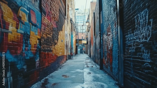 Fototapeta premium Urban art explosion bold graffiti on a brick wall in an alleyway street art photography cityscape vibrant colors