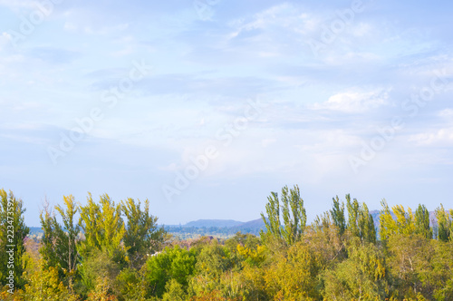 © Wingedbull, Fototapeta premium Urban Autumn landscape with trees in sunlight