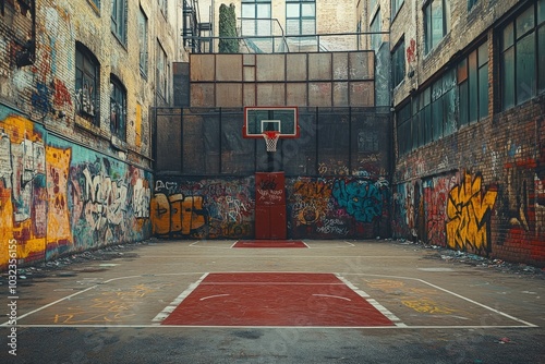 Fototapeta premium Urban Basketball Court with Graffiti Walls