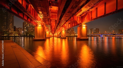 Fototapeta premium Urban bridge at night reflection