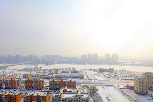 Obraz premium Urban buildings in the snow, China