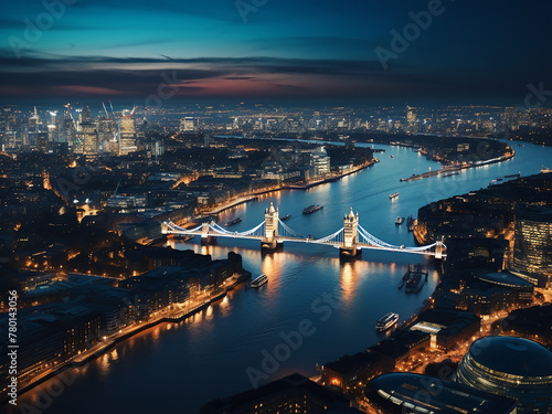 © Llama-World-studio, Fototapeta premium Urban buildings of London captured over Thames River during night