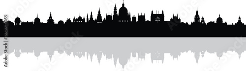 © Ashes Studio, Fototapeta premium Urban cityscape silhouette featuring skyscrapers and spires