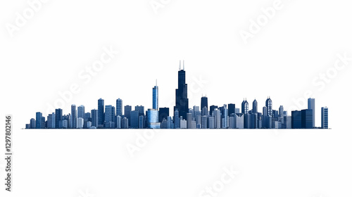 Naklejka premium Urban Cityscape with Skyscrapers Against a White Background