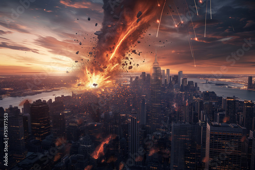 Fototapeta premium Urban Collision: Meteor Explosion in New York