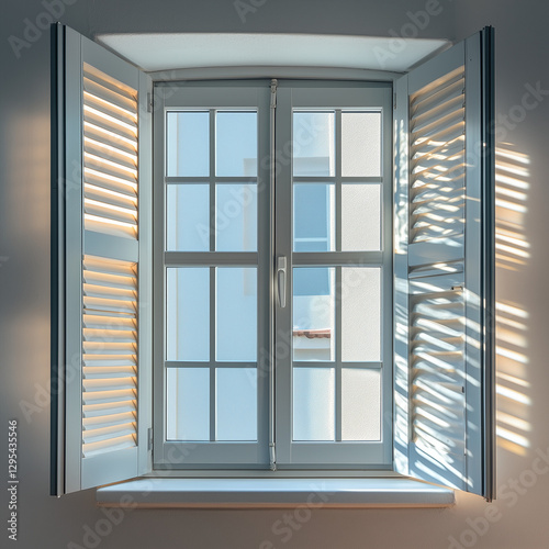 © Imasha, Fototapeta premium Urban Comfort: Closed Shutters in a Cozy Apartment Room, window in the wall
