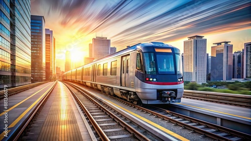 Naklejka premium Urban commuter train in motion, urban, train, transportation, city, speed,...