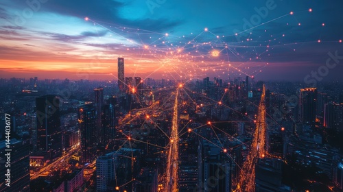 Fototapeta premium Urban Connectivity: A Visual Representation of a Connected Metropolis at Dusk