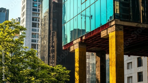 © Narongsag, Fototapeta premium Urban Construction Modern Building Steel Structure Under Construction