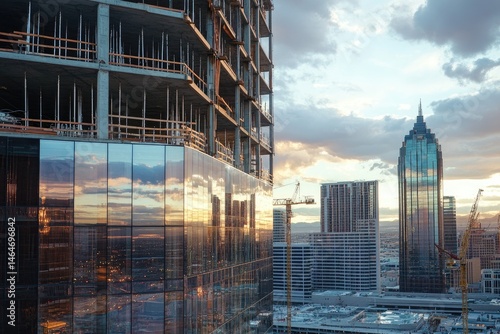 © Pixel Sculptor, Fototapeta premium Urban Construction Site at Sunset