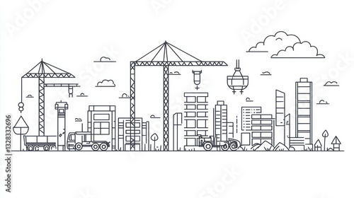 © lestari, Fototapeta premium Urban Construction Site Line Art
